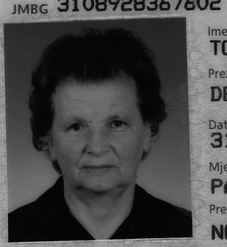 "Signature": "Ožalošćeni: suprug IVAN, kćer IVANKA i zet BOŠKO, sin ANÐELKO i nevjesta SNJEŽANA, unuke IRENA i SNJEŽANA s obiteljima, unuka DORIS i unuk ANTONIO, praunuci ANDREJ, MARIN i MARKO, sestra KATICA s obitelji i ostala tugujuća rodbina",