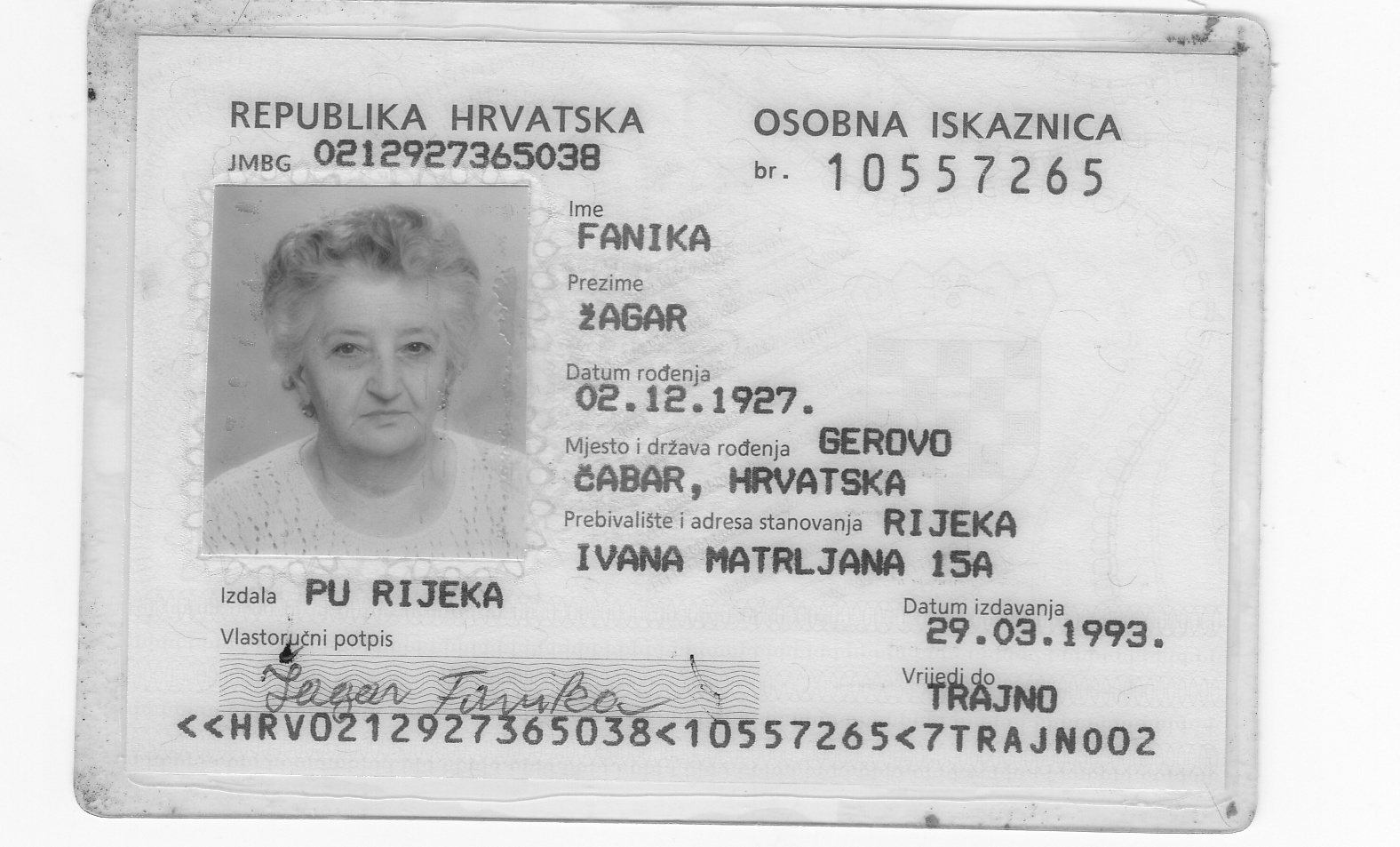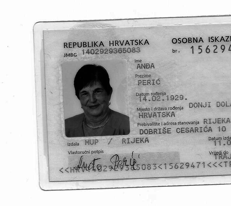 "Signature": "Za njun žaluju: hćer BISERKA, zet DRAGAN, vnuki DORIAN, MELBA i NIKOLINA z familijami, brat JOSIP i sestra ANKA z familijami",