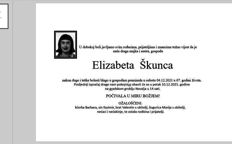 "StartText": "Obavještavamo rodbinu i prijatelje da je 2.12.2021. iznenada preminula naša najdraža",
