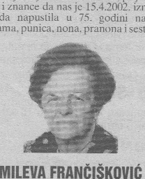 "MainText": "Prerano si otišla, ostavila nas tužne. \nHvala Ti za sve uspomene.",