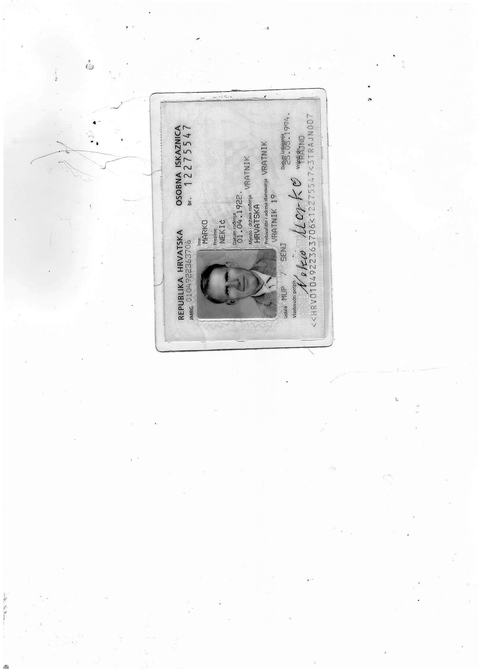 "Signature": "Tvoji: supruga NEVENKA, sinovi MARKO i GORAN s obitelji, kćer ZORA s obitelji",