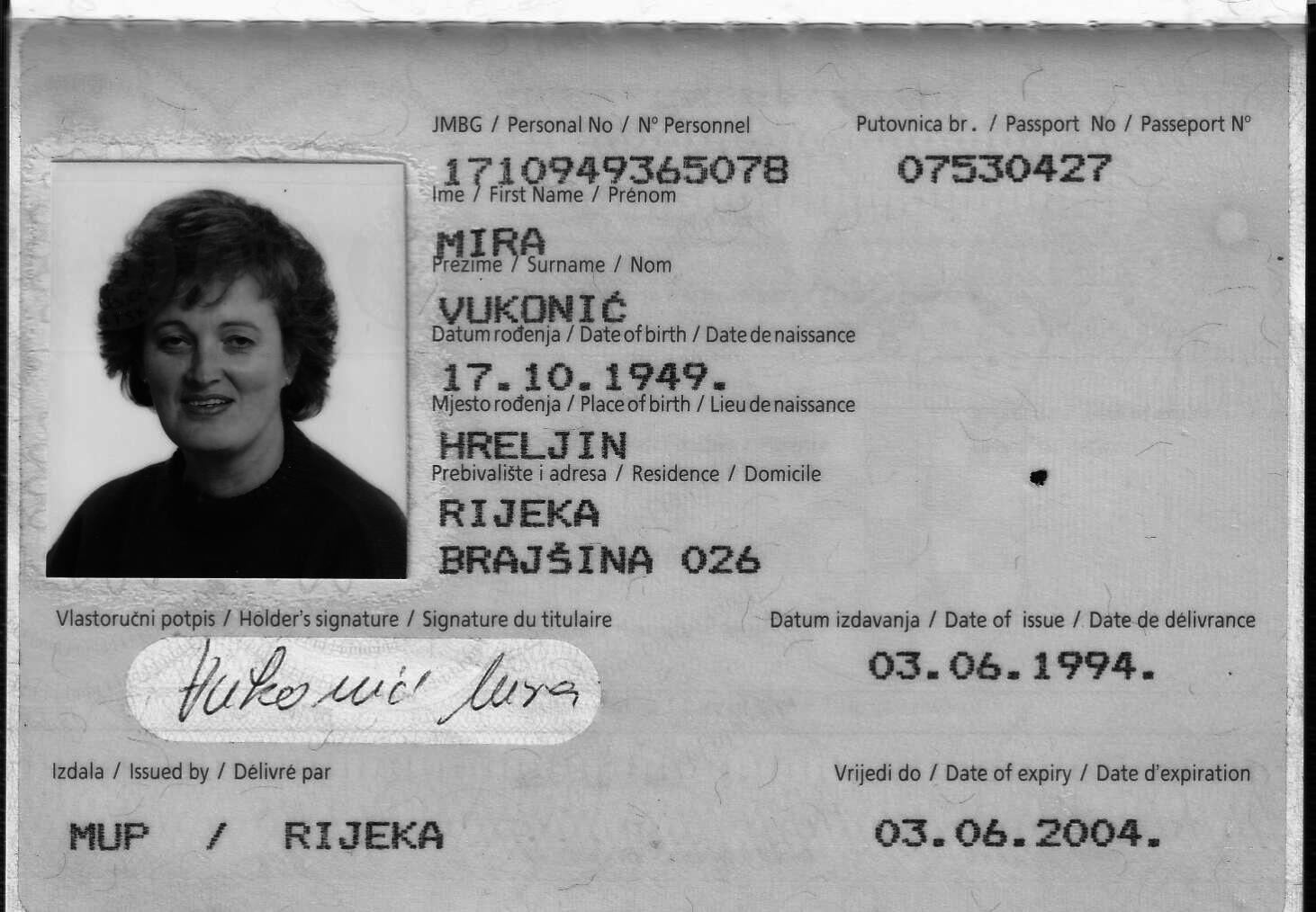 "Signature": "Tugujući: kćer IRENA, unuka ANA, praunuke LARA MARIA i LEONORA",